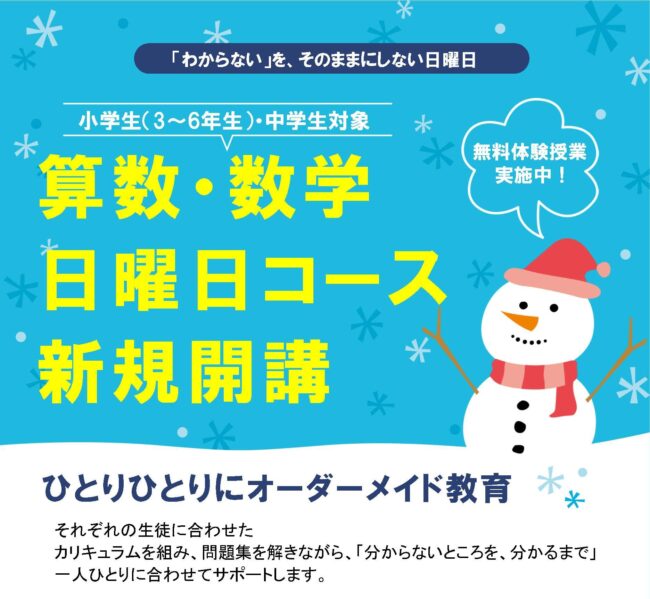 新コース開講のお知らせ【日曜 算数・数学コース】